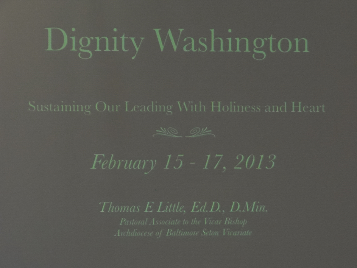 Formerly of the Center and currently the Pastoral Associate to the Vicar Bishop of the Archdiocese of Baltimore in the Seton Vicariate, Dr. Tom Little led the group in a series of reflections entitled Sustaining Our Leading With Holiness and Heart, focused on the challenge of several Catholic saints, including Francis of Assisi, Catherine of Siena, Teresa of Avila and Dorothy Day, whose Church renewal efforts in their day continue to be instructive for the mission of Dignity today. Each session sought to elicit from each member and the group as a whole practical strategies for renewed commitment and engagement to serve the Dignity/Washington community and reach out to the wider lgbt community. Several members of the Young Adult group presented their vision for improving the community’s media outreach, especially through new forms of Facebook advertising and upgrades of our website, and planning community events for the coming year. Sunday morning’s session, The Gathering of Graces, sought to capture the new insights gained through this time together, most prominently how much vitality and energy there exist in our community for the work that lies ahead.