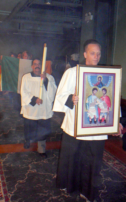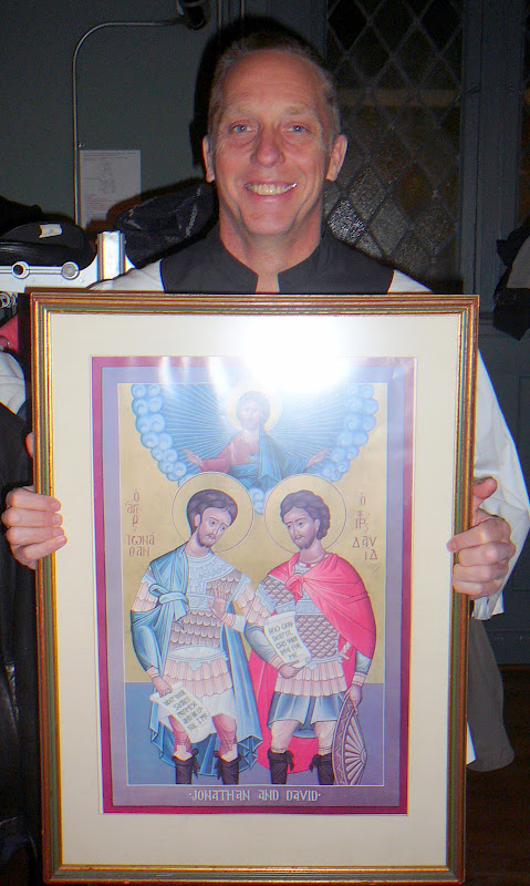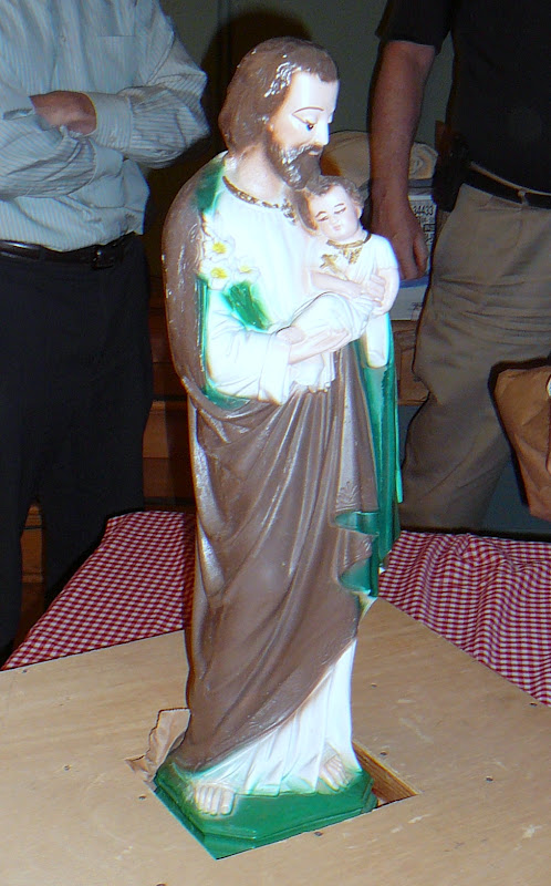A religious ceremony was again part of the evening, led by Father Mickey Martinez, with a procession of national flags, icons and, of course, the statue of St. Joseph; with congregational hymns; a Gospel reading from the life of St. Joseph; and a blessing of the meal. Helping to set the mood was a montage of film clips with music backdrop entitled The Kiss (more or less), arranged and presented by member Tom Yates, highlighting famous kiss scenes from gay and lesbian themed movies.